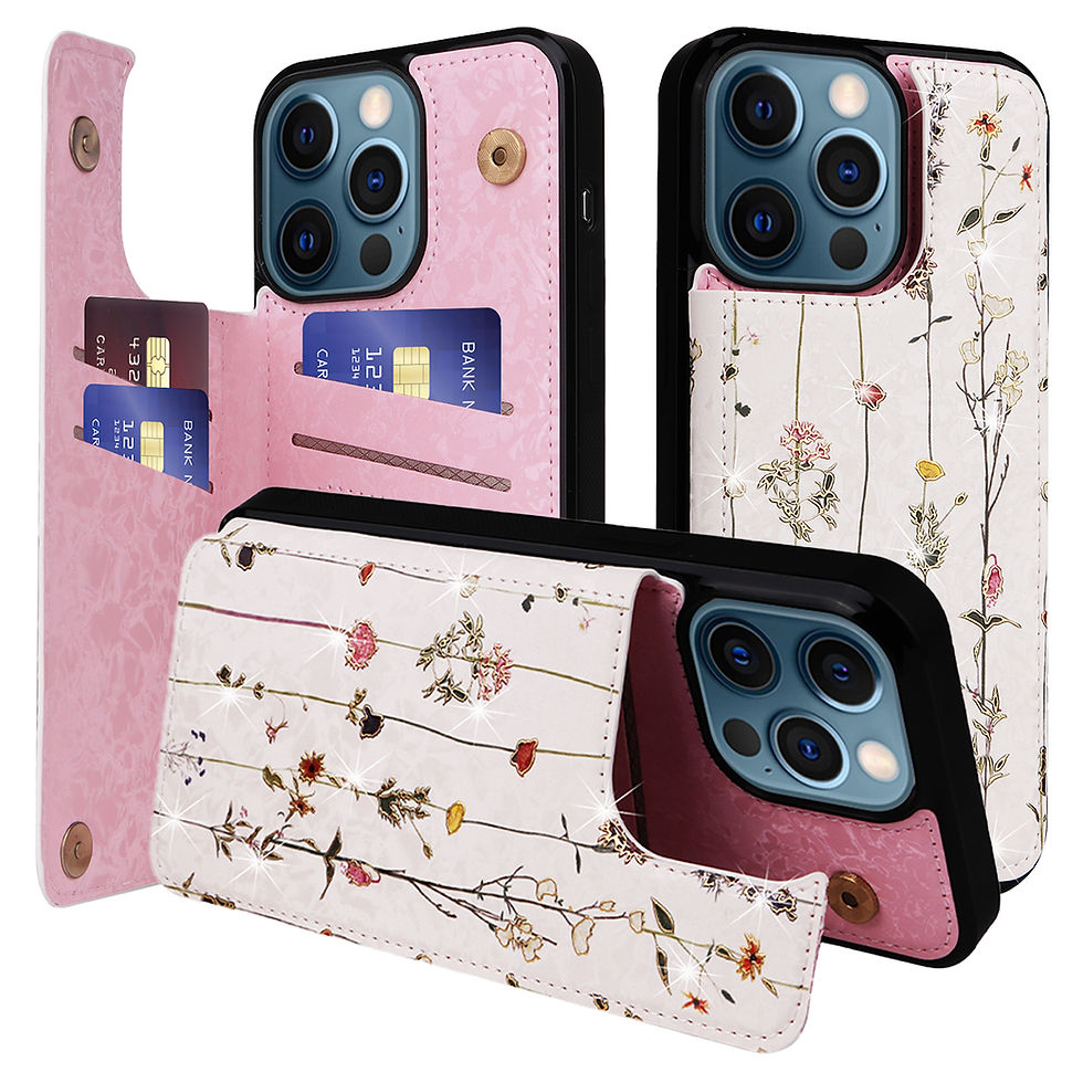 iPhone 13 Pro Floral Design Wallet Card Leather Case