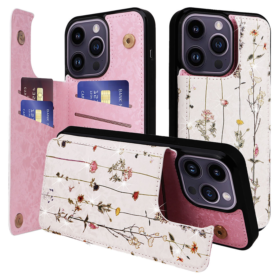 iPhone 14 Pro Floral Design Wallet Card Leather Case