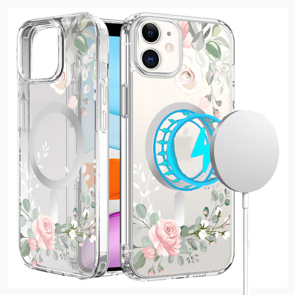 iPhone 11 IMD Pink Rose Design Clear MagSafe Case