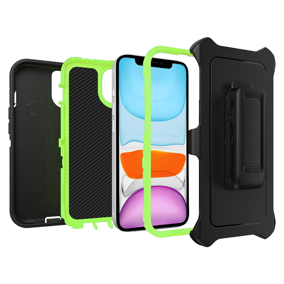 iPhone 11 Triple Defender Holster Lime Camo Dry Image Case