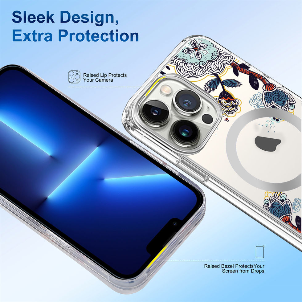 iPhone 13 Pro IMD Art Flower Design Clear MagSafe Case