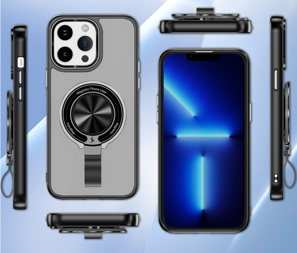 iPhone 13 Pro Max Strips 360 Ring Stand Frosted Clear MagSafe Case
