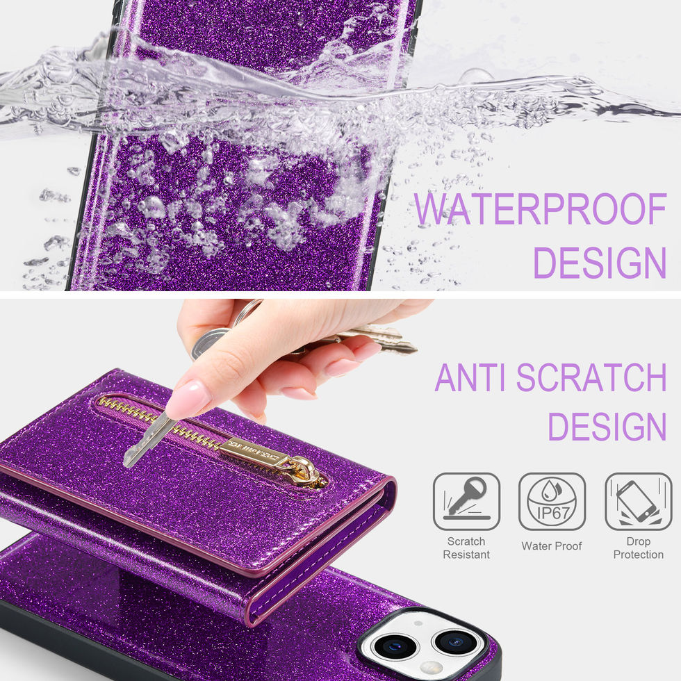 iPhone 14 Magnetic Wallet Glitter Leather Case