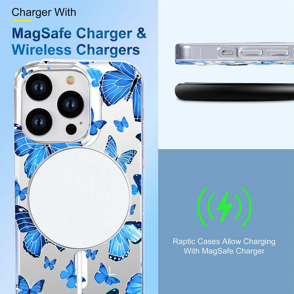 iPhone 14 Pro Max IMD Blue Butterflies Design Clear MagSafe Case