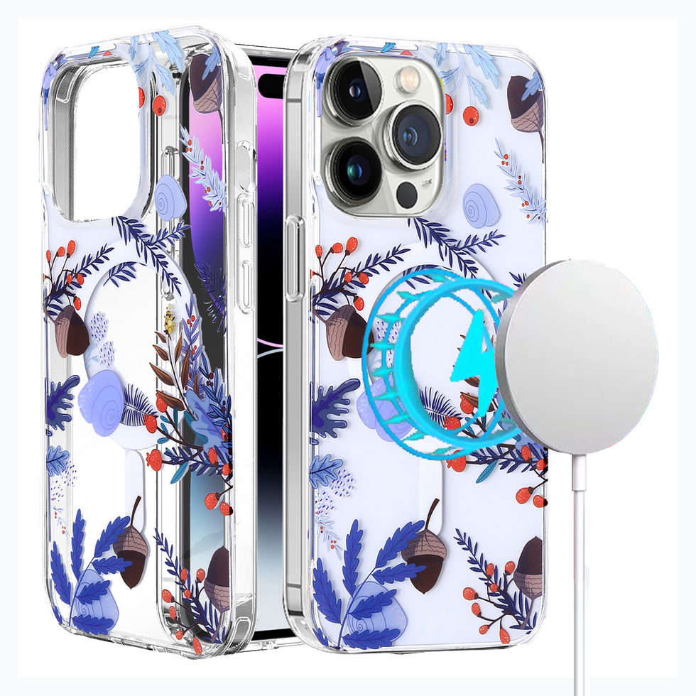 iPhone 14 Pro Max IMD Pinecone Leaves Design Clear MagSafe Case