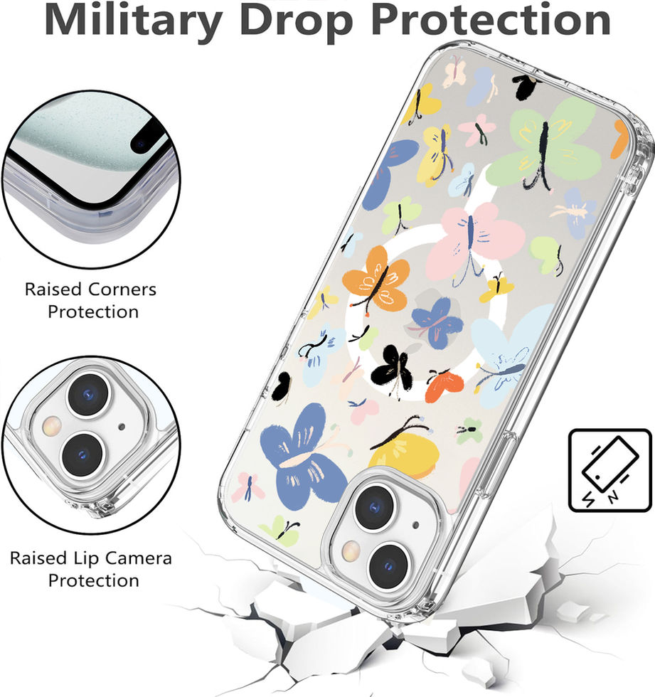 iPhone 15 Hybrid IMD Butterflies Design Clear MagSafe Case