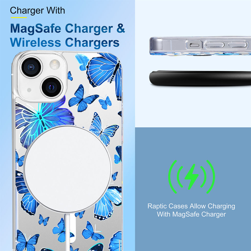 iPhone 15 IMD Blue Butterflies Design Clear MagSafe Case
