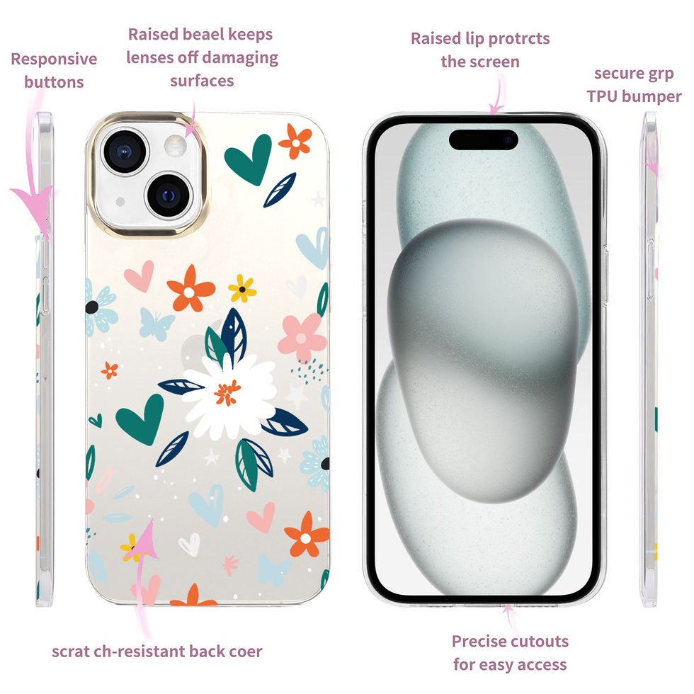 iPhone 15 Plus IMD Colorful Daisy Design Clear Case