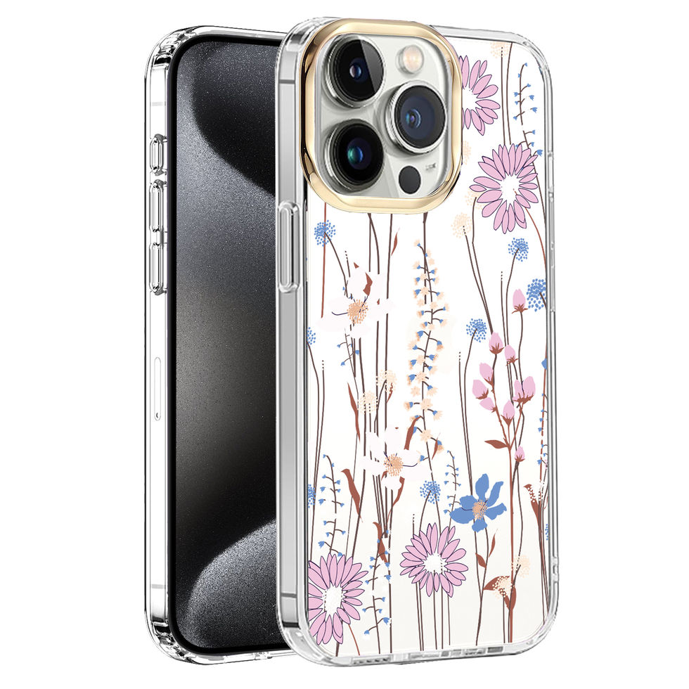 iPhone 15 Pro Max IMD Pink Daisy Design Clear Case