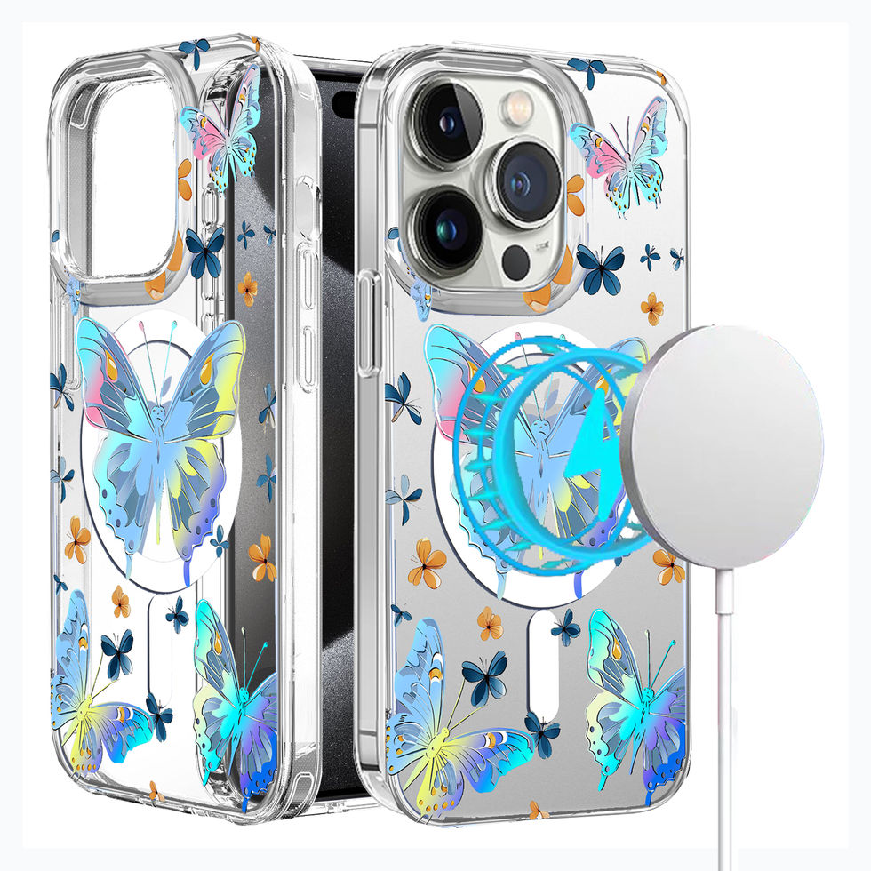 iPhone 15 Pro Max IMD Rainbow Butterflies Design Clear MagSafe Case
