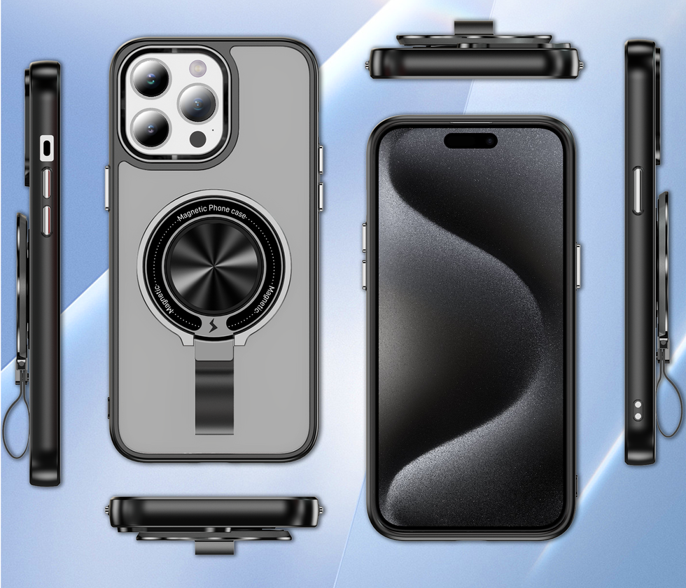 iPhone 15 Pro Max Strips 360 Ring Stand Frosted Clear MagSafe Case