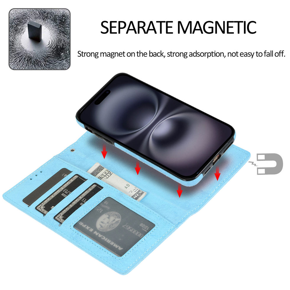 iPhone 16 Plus Detachable Magnetic Wallet Card Slot Leather Case