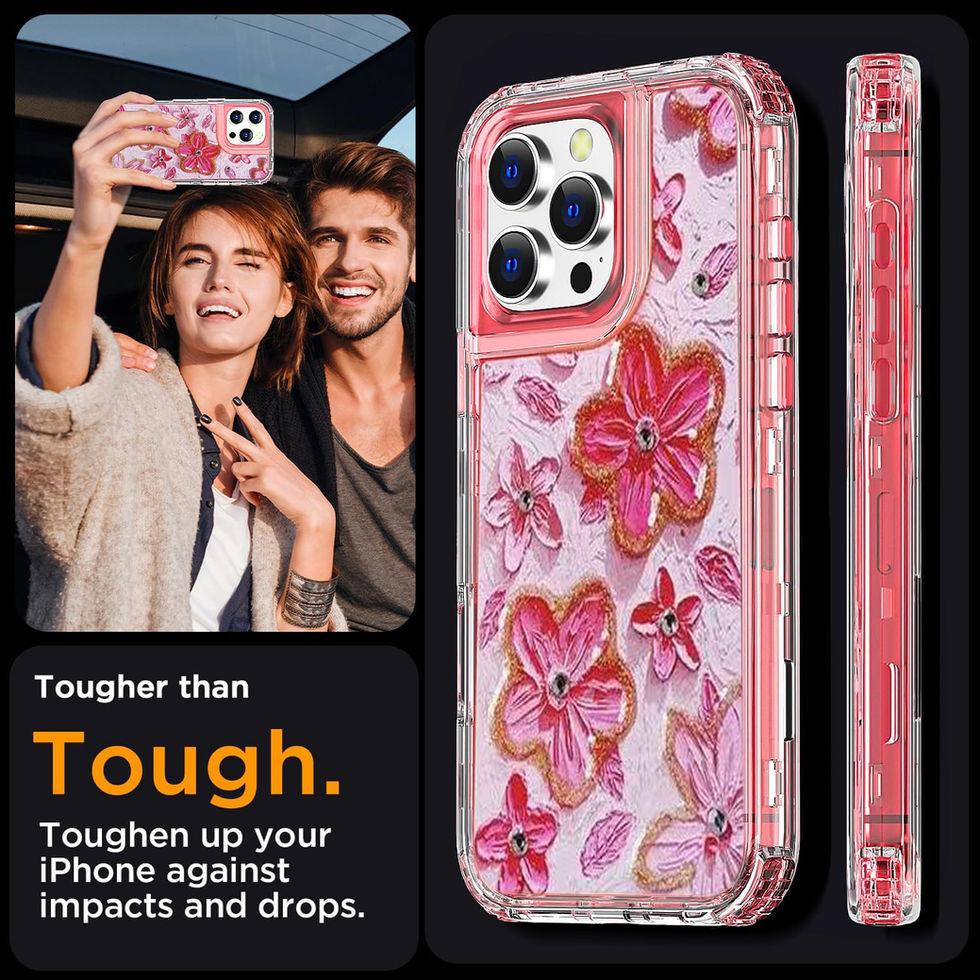 iPhone 16 Pro Allure Red Shade Flower 3 in 1 Heavy Duty Case