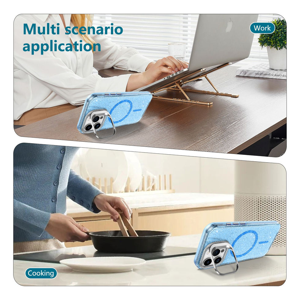 iPhone 16 Pro Galaxy Glitter Clear Camera Lens Kickstand MagSafe Case