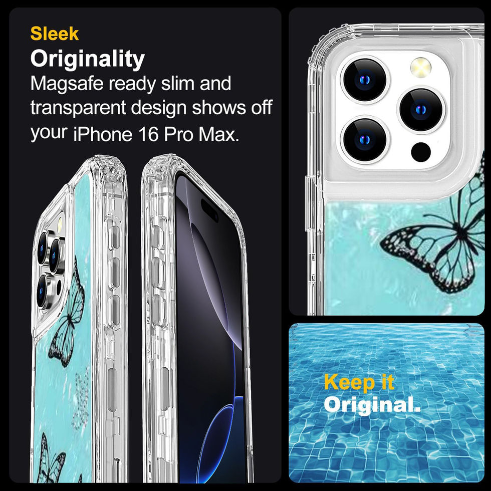 iPhone 16 Pro Max Allure Teal Butterfly 3 in 1 Heavy Duty Case
