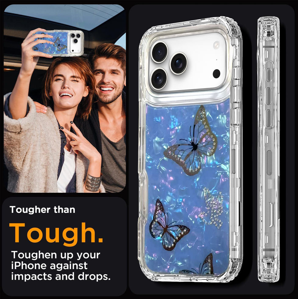 iPhone 17 Pro Allure Blue Butterfly 3 in 1 Heavy Duty Case