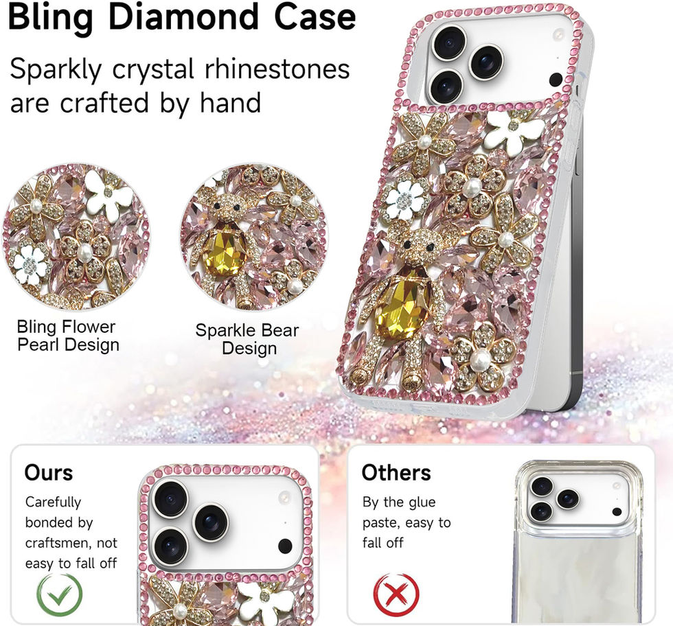 iPhone 17 Pro Max Pink Blossom Bear Bling Diamond Case